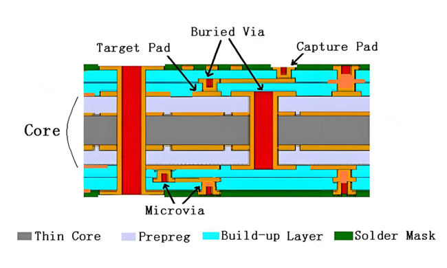HDI作為高密度互連技術的核心載體,專注于解決電子設備微型化與高性能化的互聯需求。其通過微盲孔、40/40μm精細線路及疊孔(Stack via)、填孔(Copper fill)等工藝實現超高密度布線,使元器件在緊湊空間內達到最優布局。該技術具備任意層互連(ELIC)、高縱橫比微孔加工及卓越信號完整性控制能力,可有效提升高頻性能并減少干擾。江門二廠已成功開發10L/12L ELIC、2+N+N+2、4+N+4等先進結構,廣泛應用于智能手機、高端穿戴設備及醫療微系統等領域,持續推動電子產品向輕薄化、多功能化發展。